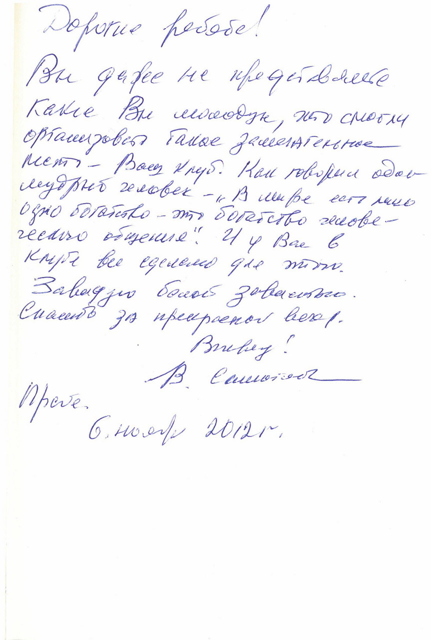 На посиделках расказал нам многое «о времени и о себе» - о счастливых годах дружбы с Юрием Визбором и Адой Якушевой, у которых жил целый год в их знаменитой и не раз воспетой бардами квартире н а Неглинке, где собирались молодые Городницкий, Ким, Куин, Берковский и другие столпы аторской песни